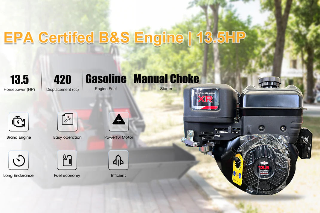 This mini skid steer loader is powered by a premium Briggs & Stratton 13.5HP engine for powerful yet fuel-efficient operation and superior heat distribution. Bid farewell to grating vibrations, savor flawless functioning, and anticipate its longevity. Longer service life.