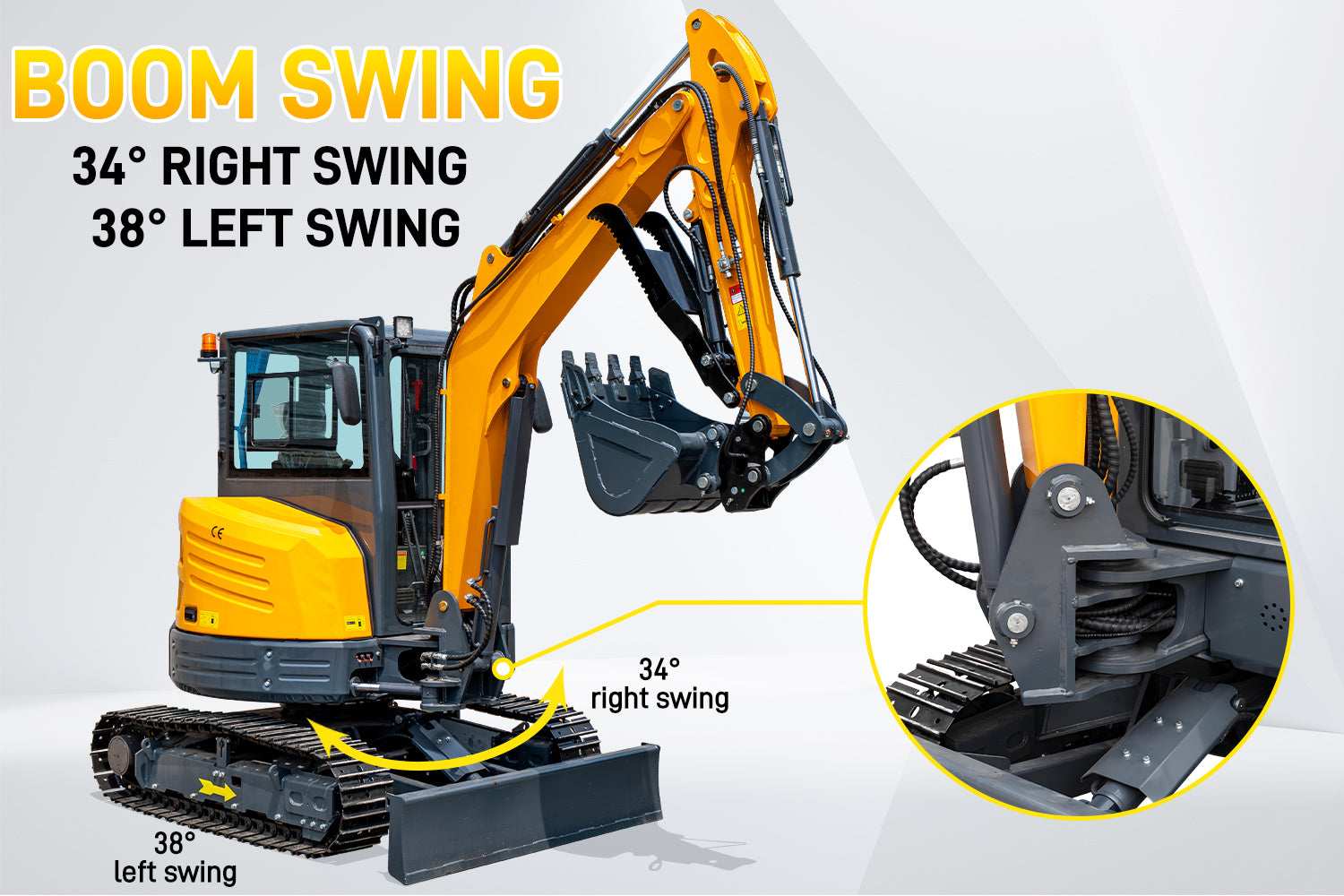 Our 3.5-ton mini excavator is equipped with a powerful 38° left swing and 34° right swing function, especially suitable for working in narrow spaces. You don’t need to constantly adjust the machine to work in those hard-to-reach areas. This kind of flexibility can make your work more comfortable and improve your working capability.