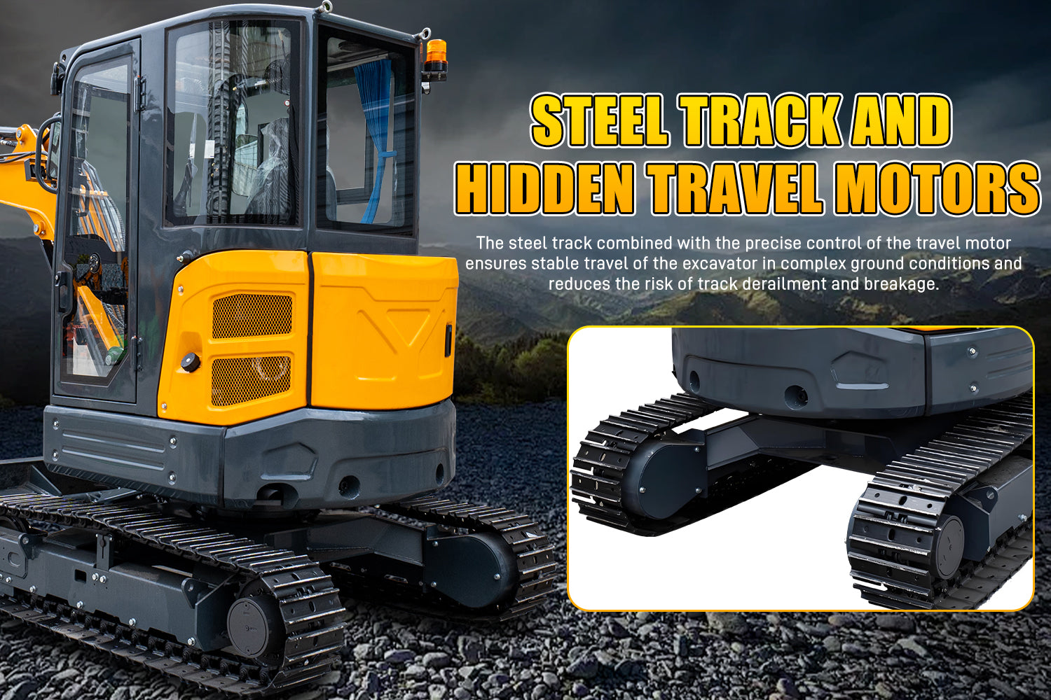 Heavy-duty steel tracks are built for durability and reliability, providing maximum traction on rough terrain, while our hidden travel motor is protected inside the track frame, which can prevent damage and extend service life.