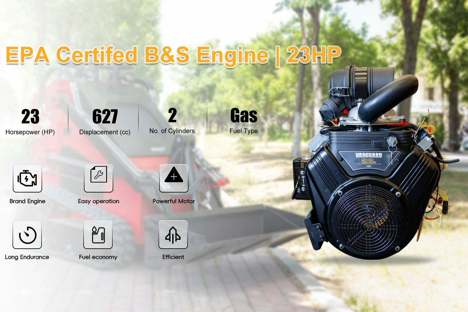 This mini track skid steer loader is powered by a premium Briggs & Stratton 23HP engine for powerful yet fuel-efficient operation and superior heat distribution. Bid farewell to grating vibrations, savor flawless functioning, and anticipate its longevity.