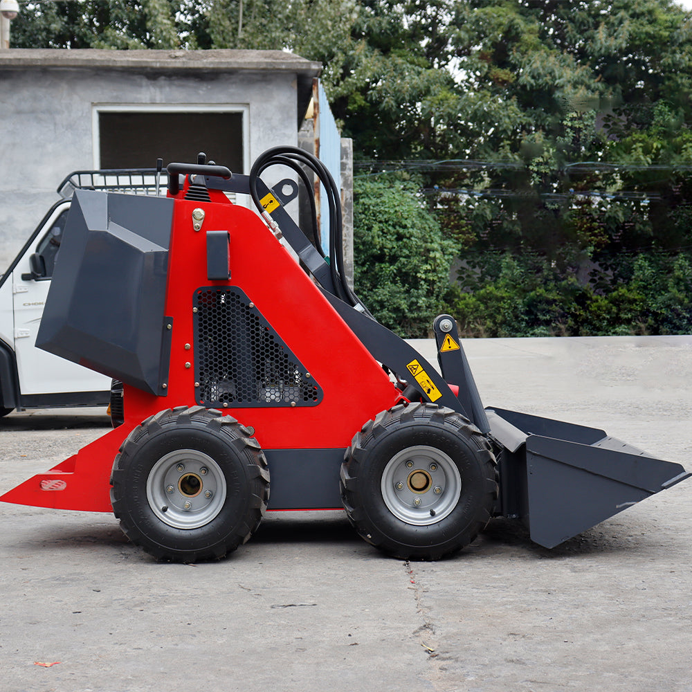 This mini skid steer loader adopts tires instead of tracks, which to some extent travels much faster and improves your work efficiency