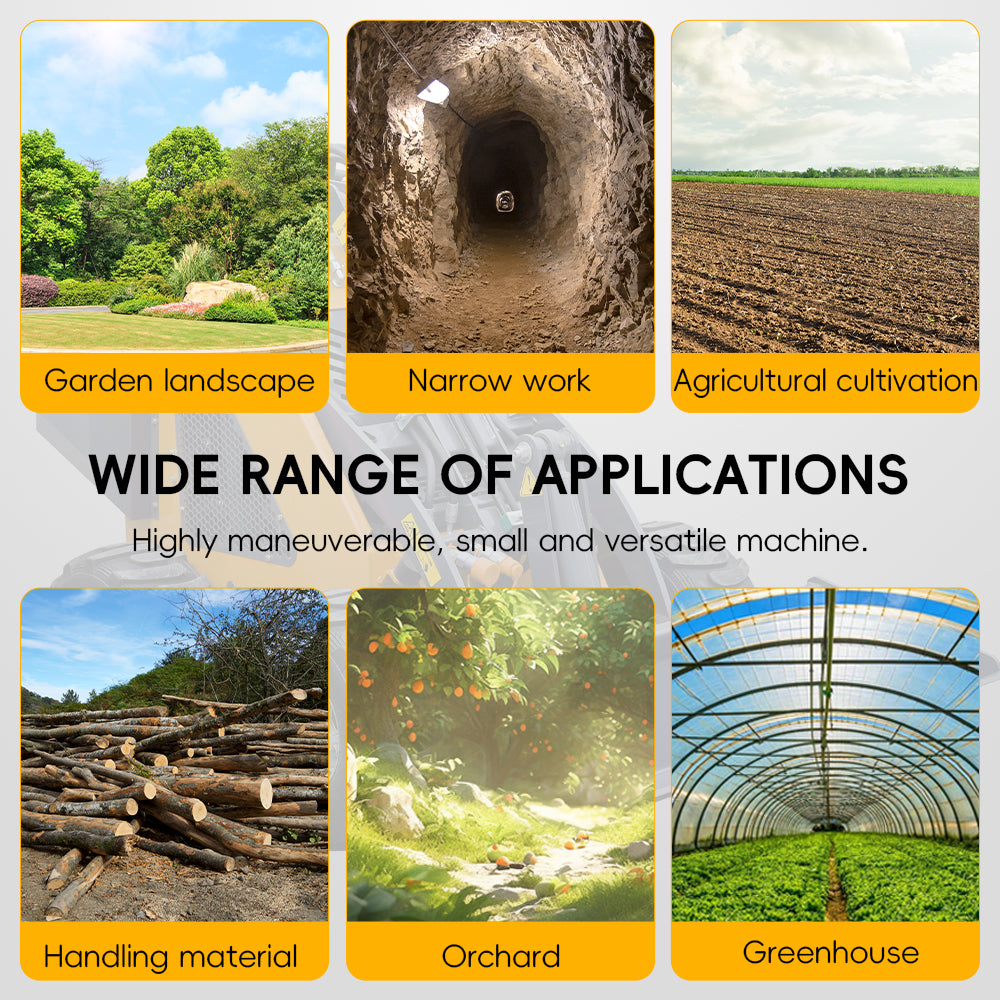 Use the handy joysticks to effortlessly adjust the speed, direction, and lifting height. For simple and accurate movement, this small skid steer is suitable for both inexperienced and seasoned landscapers.