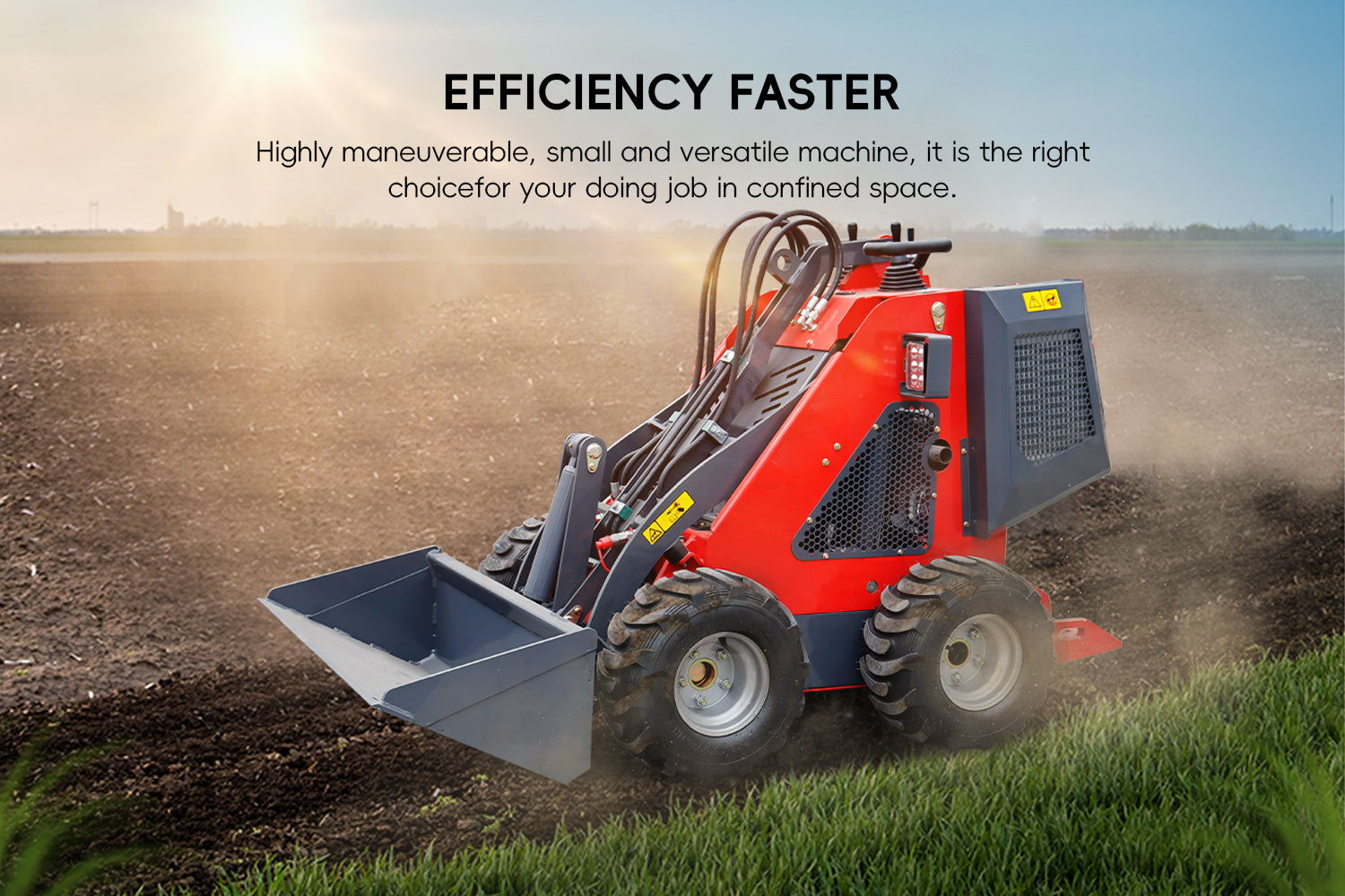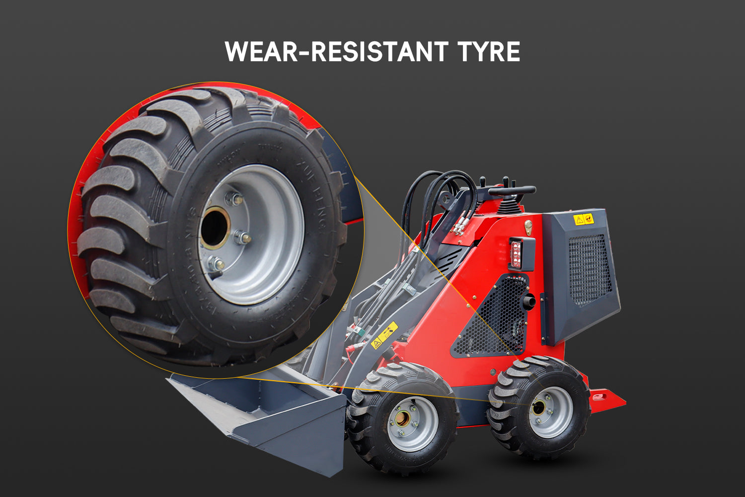 This mini skid steer loader adopts tires instead of tracks, which to some extent travels much faster and improves your work efficiency
