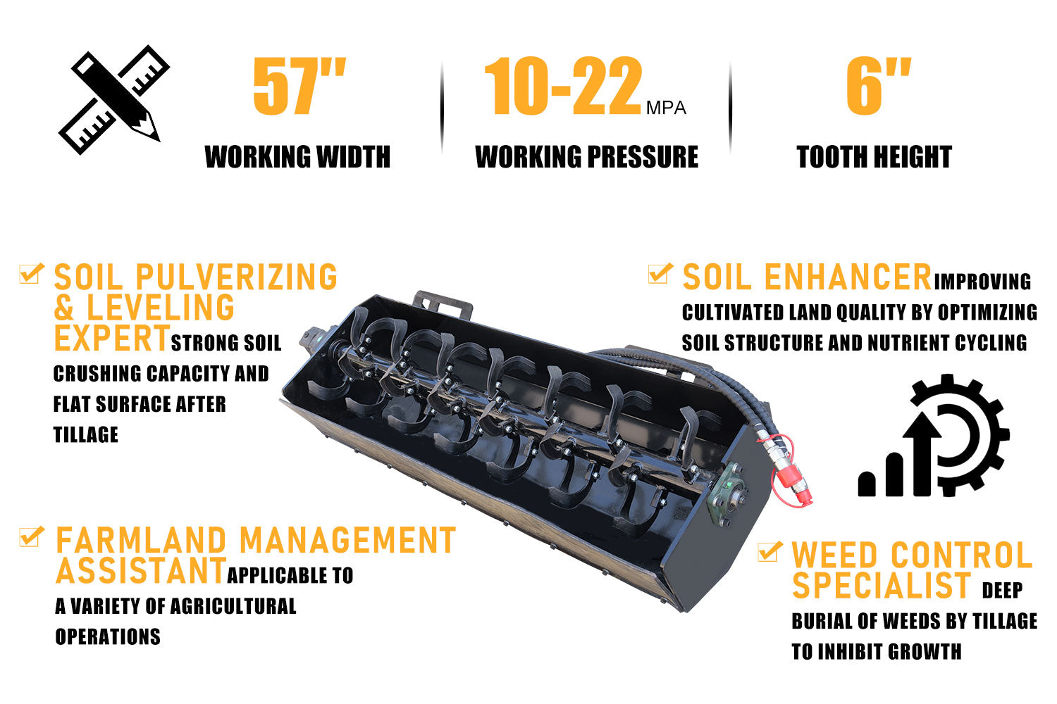 The MMS 57-inch Skid Steer Rotary Tiller Attachment is the perfect choice for landscaping, agricultural projects, and small-scale jobs. Designed specifically for skid steer loaders, it helps you save valuable time and significantly boost productivity.