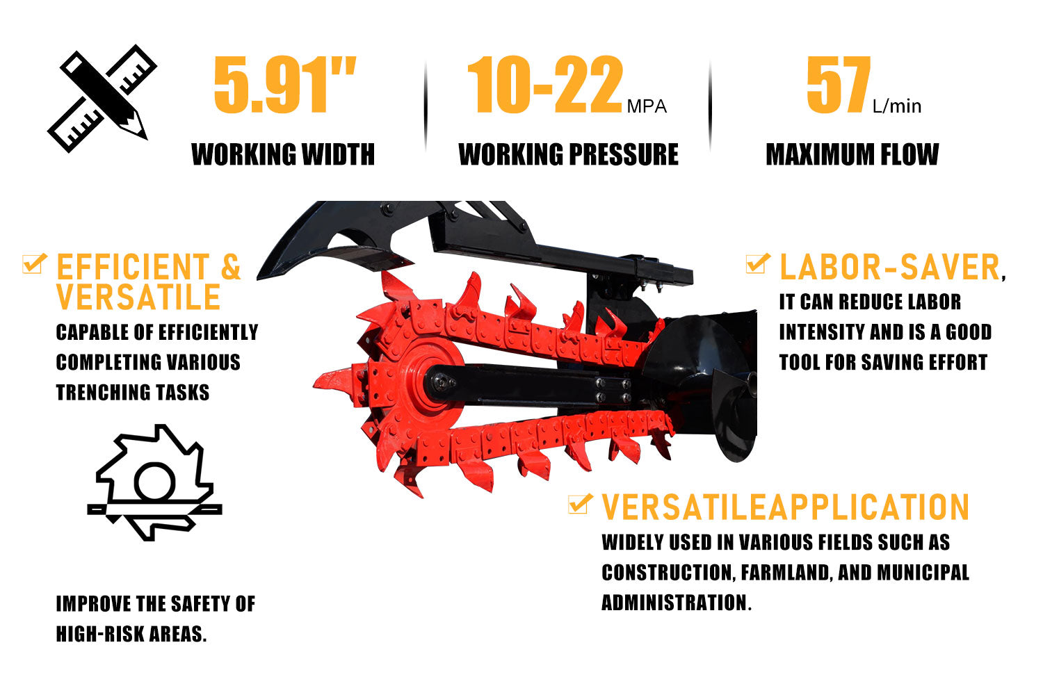 - MMS skid steer loader trench attachment Efficiently complete a variety of trenching operations, widely used in construction, farmland, municipal, and other fields.