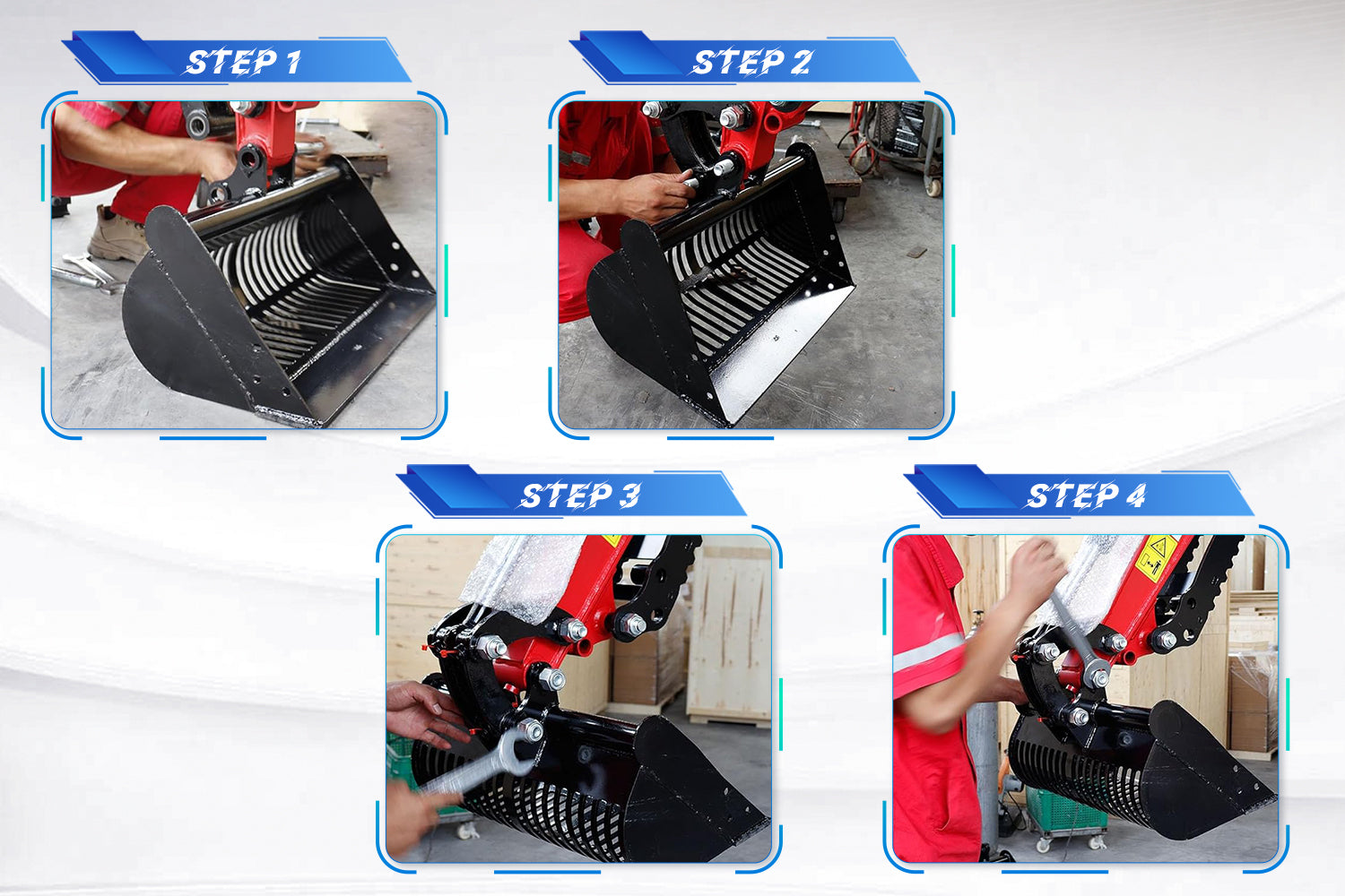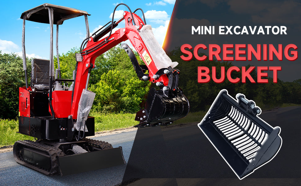 Screening sieve bucket designed for mini excavators. It can effectively filters out rocks, brush and other large debris, leave backfills such as soil or sand in place. Ideal for land reclamation and clearing