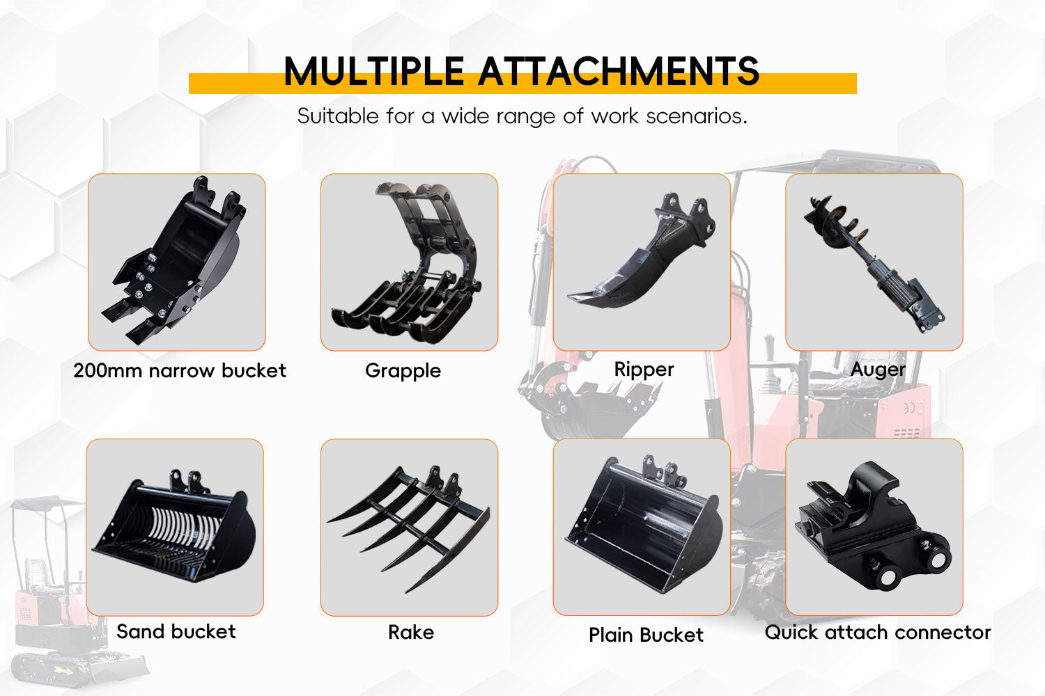 Durable Attachments: Compatible with most compact excavators and skid steer loaders.