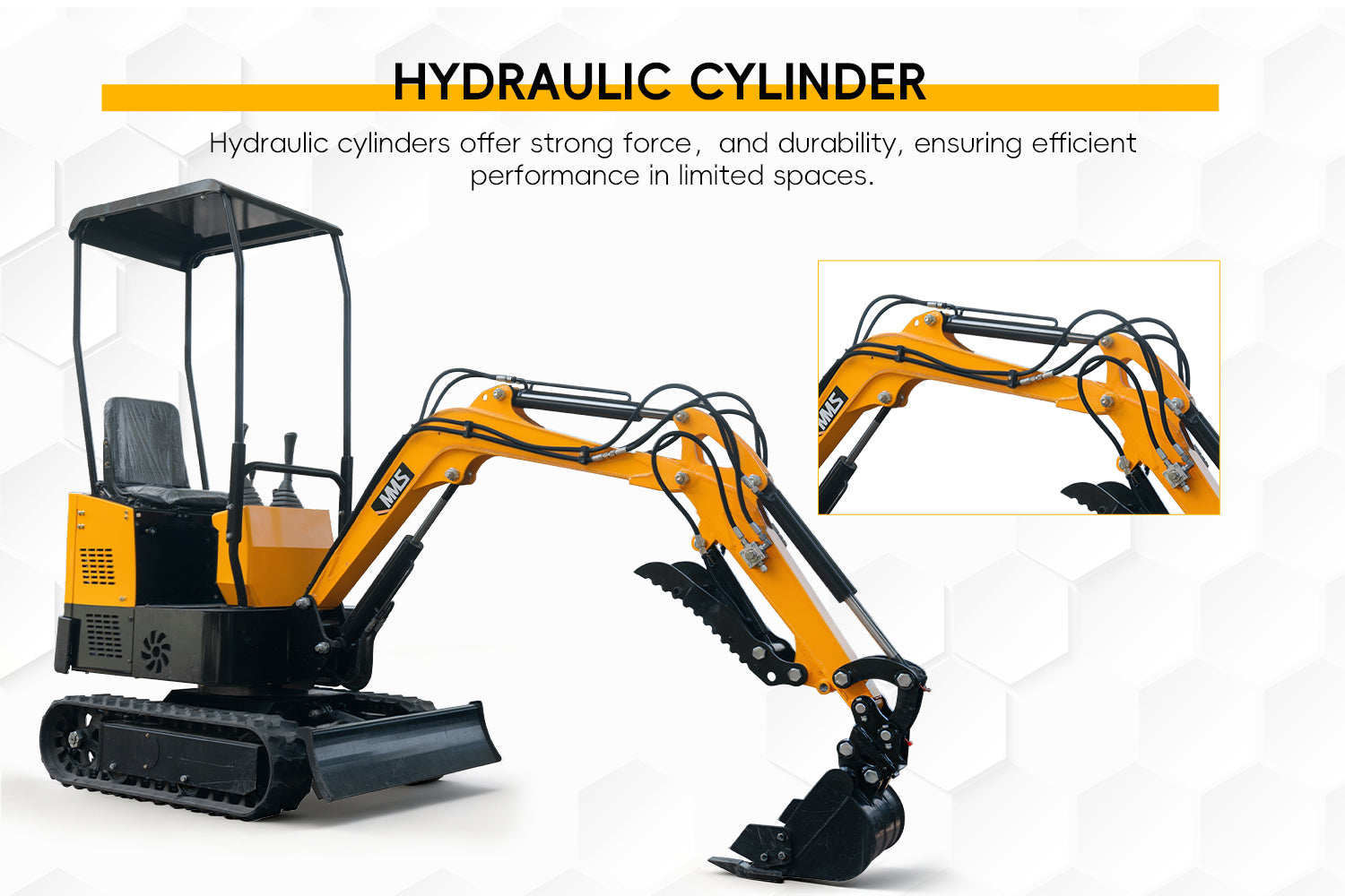 Compact and Versatile: This small excavator is built to handle diverse terrains, and is compatible with various mini excavator implements for added functionality.