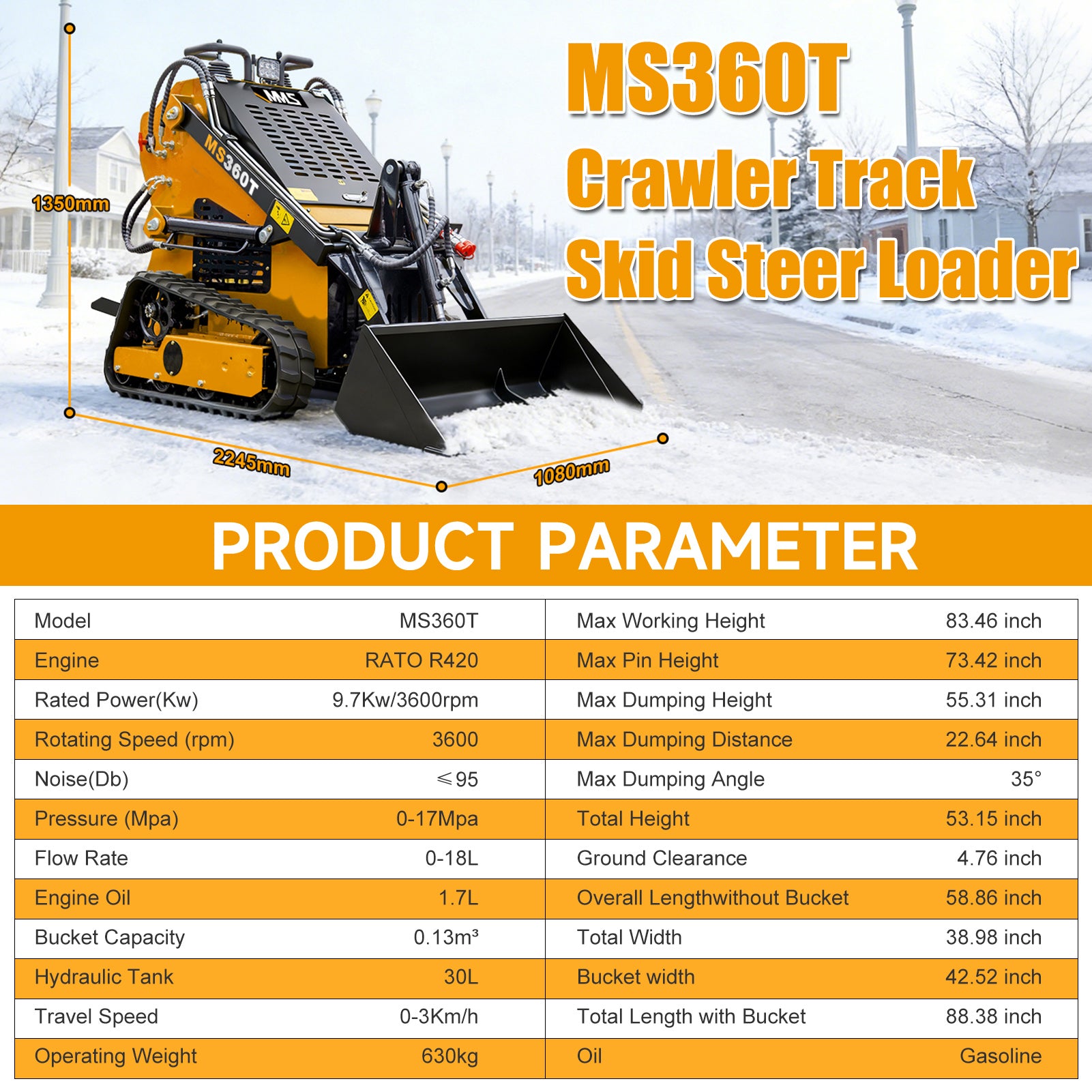 MS360T Mini Stand On Skid Steer Track Loader With 13.5HP Gas Engine